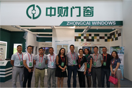 參觀人員在會(huì)員企業(yè)中財(cái)型材展位前留影