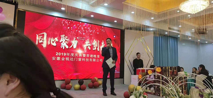 時光飛逝,歲月如梭,轉(zhuǎn)眼間忙碌的2019年已過去,充滿期待的2020年向我們走來。新的一年,孕育新的目標和希望。安徽金銳達門窗科技有限公司2019年年會于1月22日在膳源假日酒店隆重舉行,公司全體員工歡聚一堂,共度聯(lián)歡。