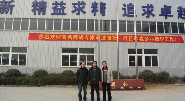 元月13日上午,著名商戰(zhàn)專家李波教授一行蒞臨我公司調(diào)研并指導(dǎo)工作。李波教授一行在我公司領(lǐng)導(dǎo)和有關(guān)專家的陪同下,首先參觀了我公司的生產(chǎn)車間、廠容廠貌,隨后針對我公司的生產(chǎn)環(huán)境和周邊環(huán)境進(jìn)行調(diào)研指導(dǎo)。